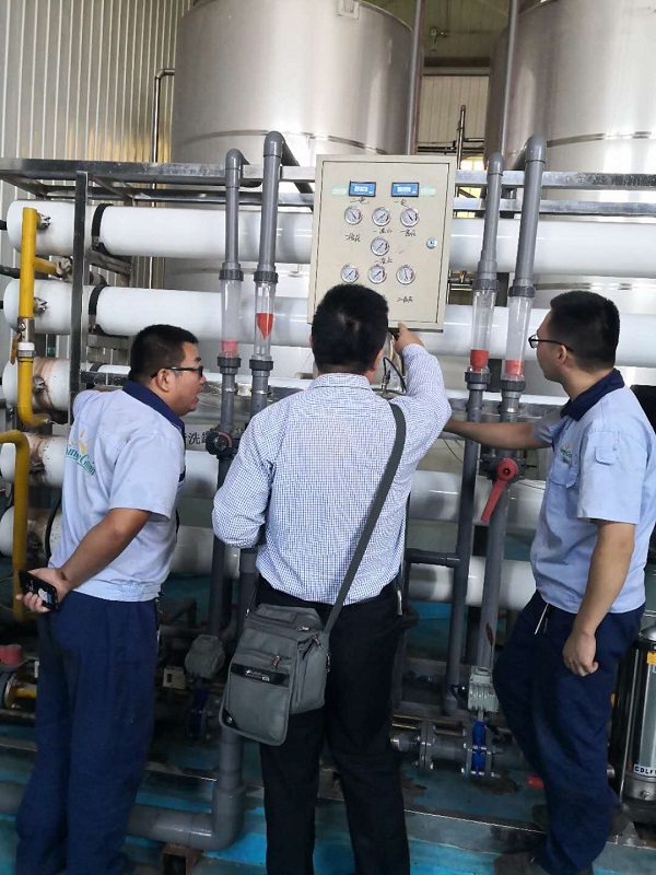 六、用預(yù)處理合格產(chǎn)水沖洗系統(tǒng)20-30 分鐘,為防止沉淀,沖洗溫度為20℃以上,將清洗液沖出無殘留。開啟系統(tǒng)運行,檢查清洗效果,產(chǎn)水排掉不用。若要停機不用的要按相關(guān)方法保存好組件。