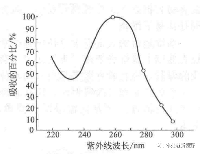 紫外線消毒主要采用的是C波段,如下圖所示,DNA的吸收光譜為240-280nm,吸收峰在260nm左右。
