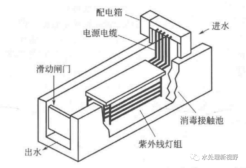 水面式又稱水面照射法,即將紫外燈置于水面之上,由平行電子管產(chǎn)生的平行紫外光對(duì)水體進(jìn)行消毒。該方式較浸沒式簡單,但能量浪費(fèi)較大、滅菌效果差,實(shí)際生產(chǎn)中很少應(yīng)用。
