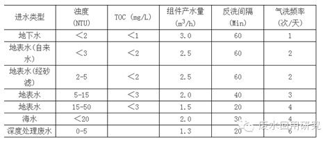 注:如原水為地表水,應(yīng)在反洗水中加入NaClO,并控制反洗排放水余氯濃度為3-5mg/L。