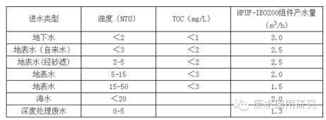 注:表列組件產(chǎn)水量是通用標(biāo)準(zhǔn),具體項(xiàng)目組件產(chǎn)水量根據(jù)具體水源條件而定。