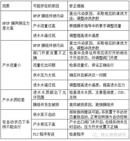 如果維護(hù)方法正確,且操作壓力低于0.6MPa的最大操作壓力,HFUF組件不會發(fā)生泄漏。一旦發(fā)生泄漏事故,必須立即關(guān)閉裝置。關(guān)機(jī)后,檢查漏水裝置,并予以排除,爾后裝置再次加壓試水。